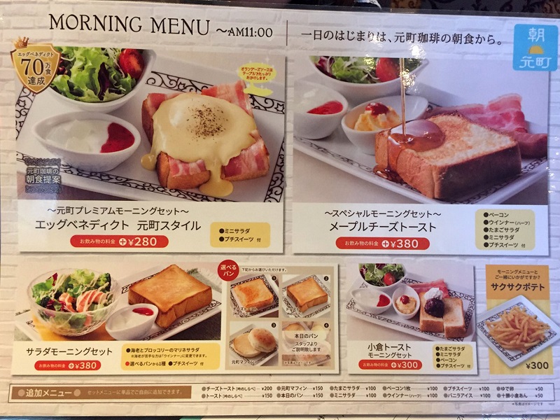 モーニングではパンと卵が付けれらます。オプション(有償)で様々なトッピングができます!