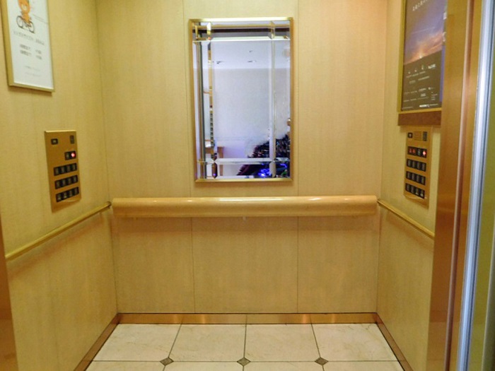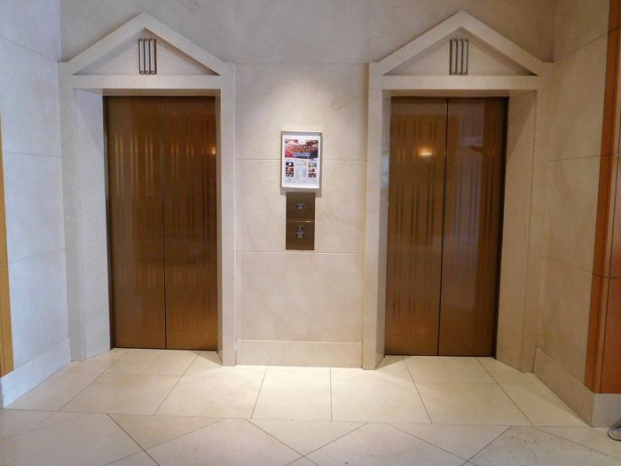 2基のうち右側エレベーターには側面にもボタンがあります。