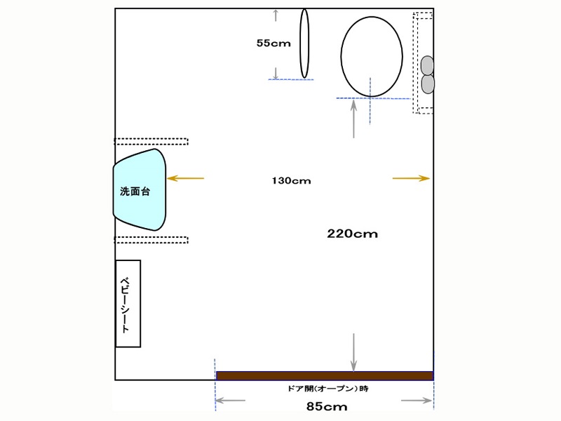 | トイレ幅(ドア開時) | 85cm |