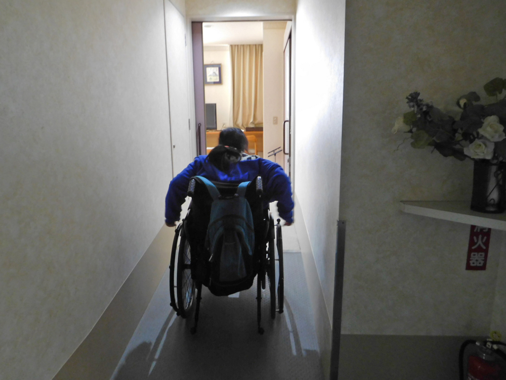 | (部屋までの)段差 | 廊下から部屋の扉まで1.5mほどのスロープとなっています。 |