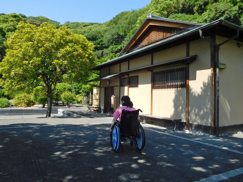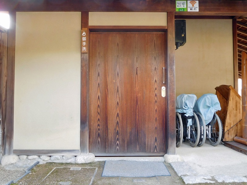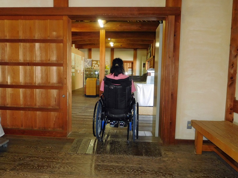 急坂のため車椅子で入口まで上がるには数名の介助者が必要です。