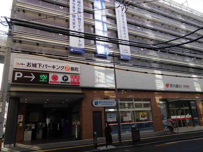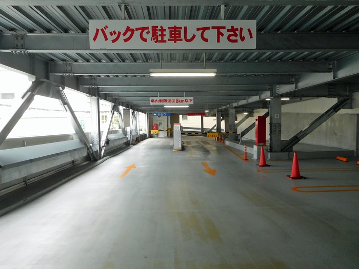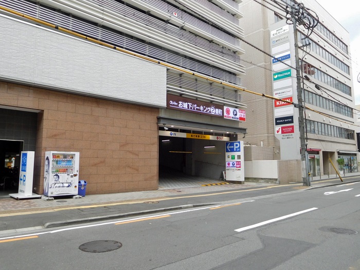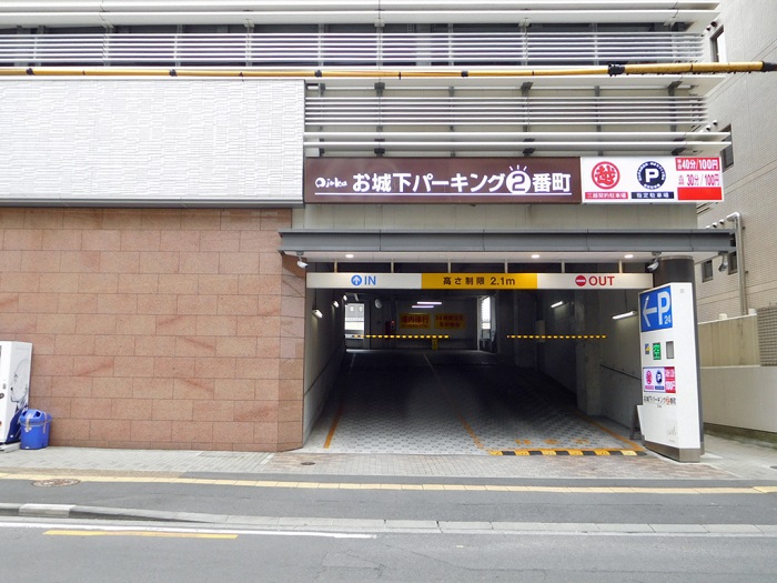 駐車場前の道路は東から西(大街道から堀之内)方向への一方通行です。