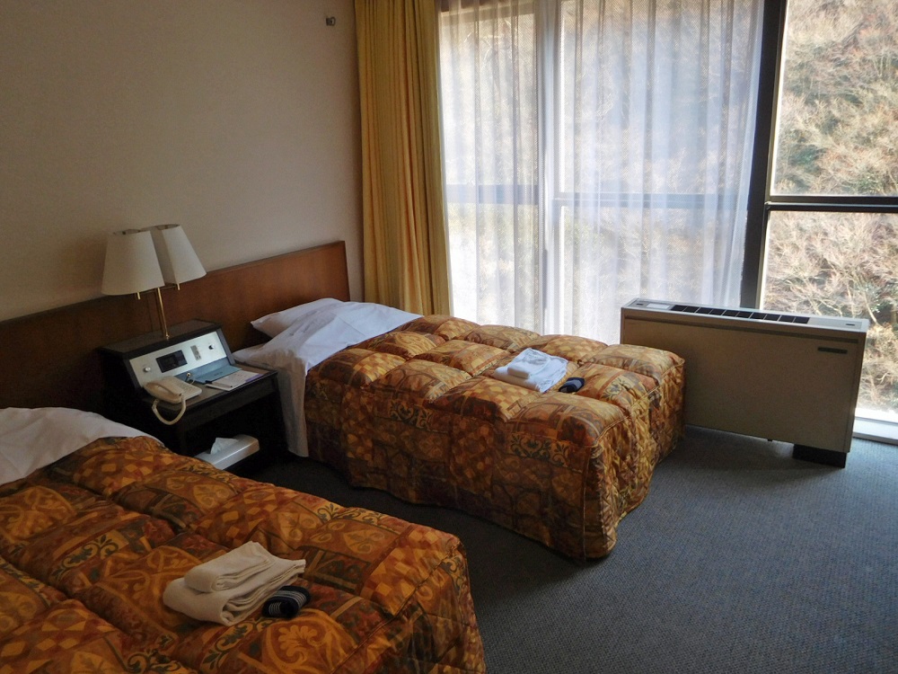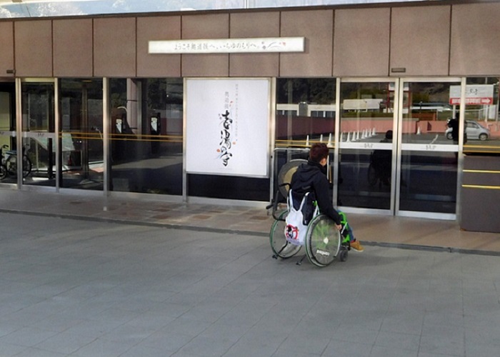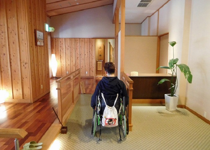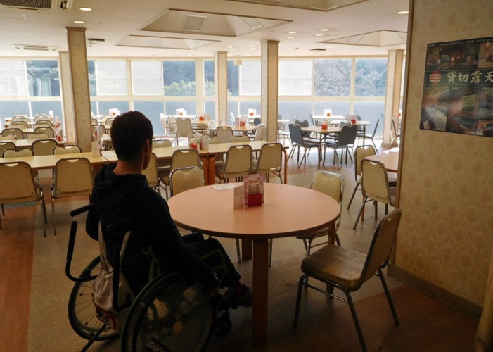 車椅子が通れるだけのスペースがあります。 窓からは渓谷美が堪能できます。