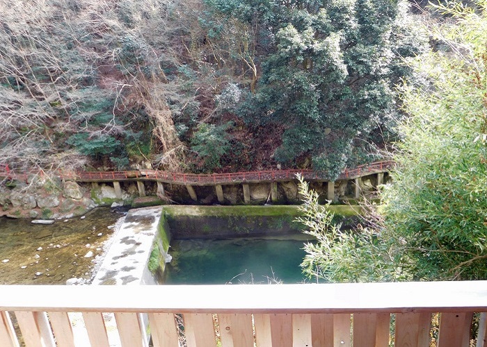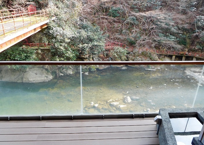 渓谷美を眺めながらの足湯は気持ちがいいです。
