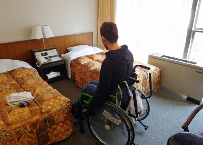 ここではバリアフリートイレ(共用)そばにある3312号室を紹介します。 (そのほか3311、3314、3315号室がバリアフリートイレ近くの洋室です。)