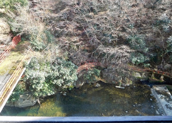※遊歩道は車椅子対応とはなっていませんが、園内へは車で下っていけます。太鼓橋(赤い橋)あたりまでなら車いすでも散策できます。