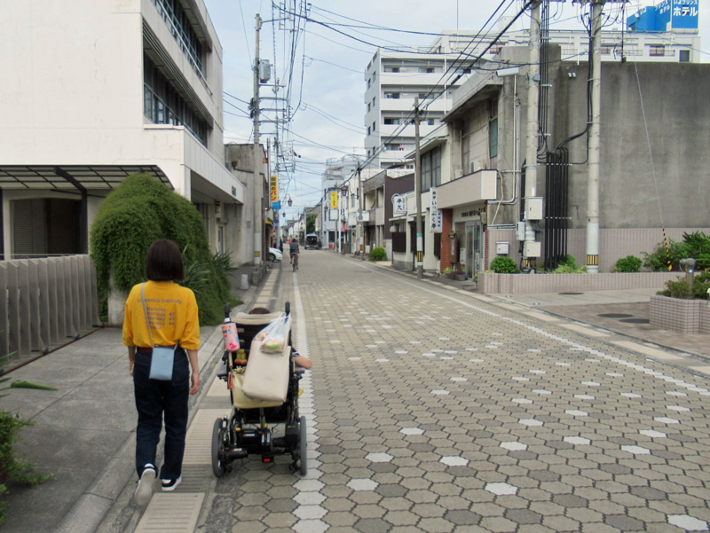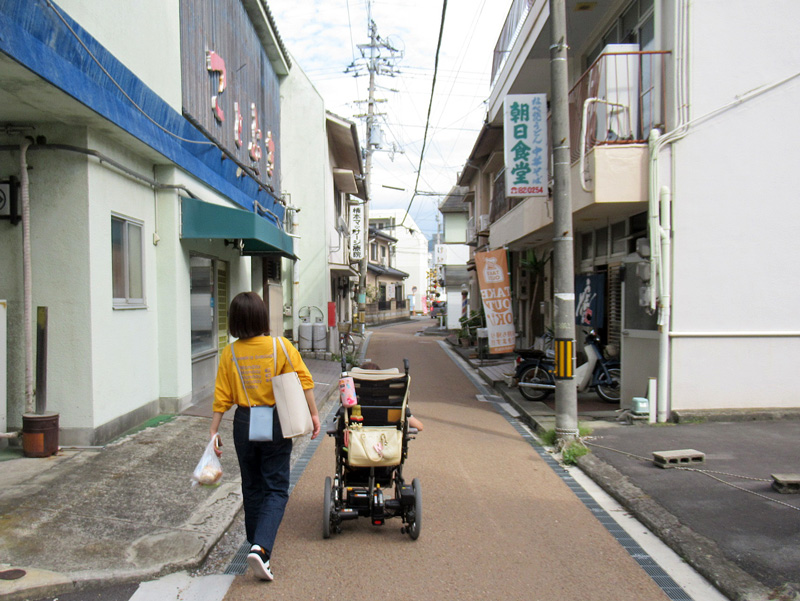 商店街はとても道が広くて車いすでも歩きやすいです。ただ車も通行するので注意してくださいね。