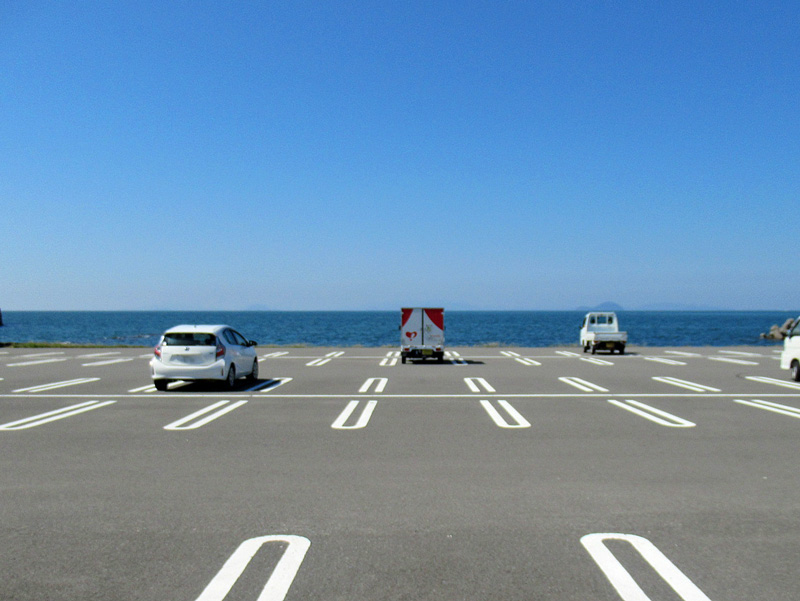 そして旧灯台と共に現れたのが広々とした空間(駐車場)。その向こうには大空と瀬戸内海が広がっています!やって来ました五色浜!!