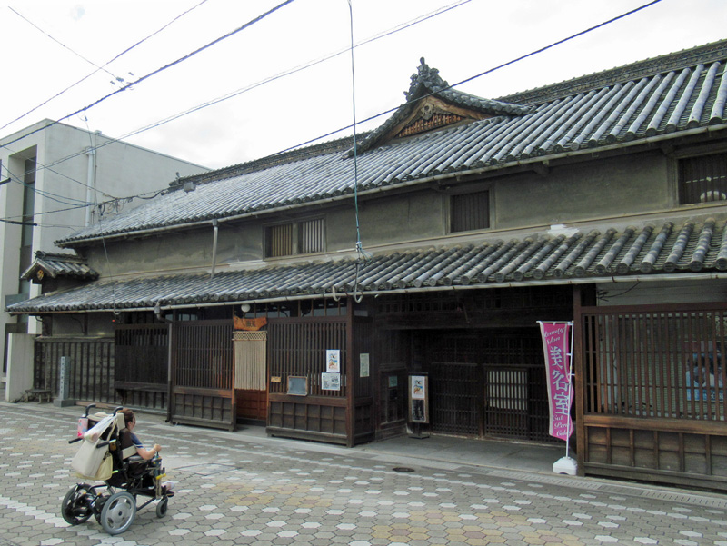現在この母屋は『ミュゼ灘屋』と名付けられ、伊予市のコミュニティ文化発信基地として映画上映やミュージアム、コミュニティスペースとして利用されています。残念ながら段差があるため車椅子では中に入れませんが、玄関先から中を見ることはできました。