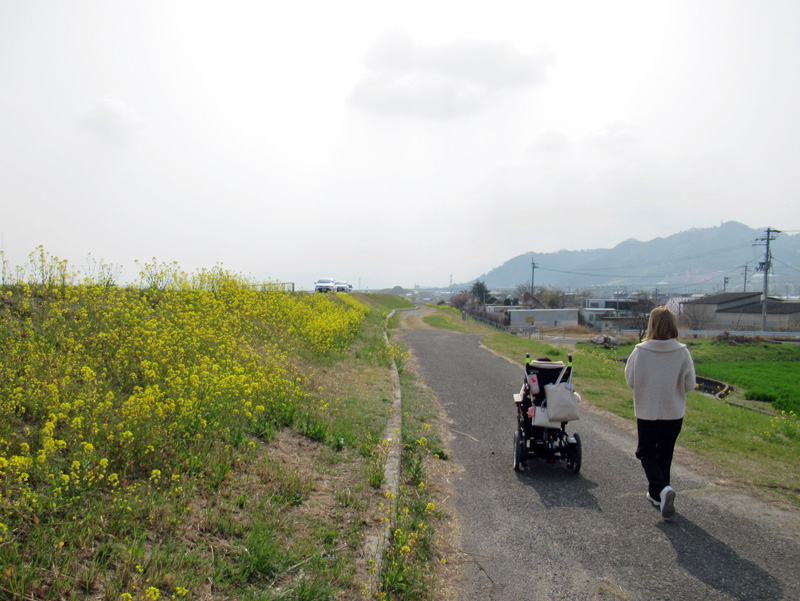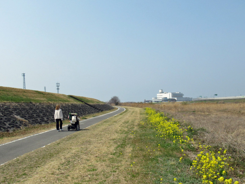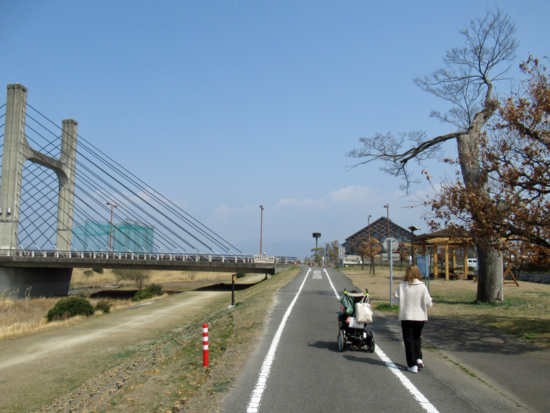 河川敷の土手を歩くのも気持ちいですし、川沿いにはサイクリングコースが設けられており、どちらも車は通らないので車椅子でも安心して通ることができます。
