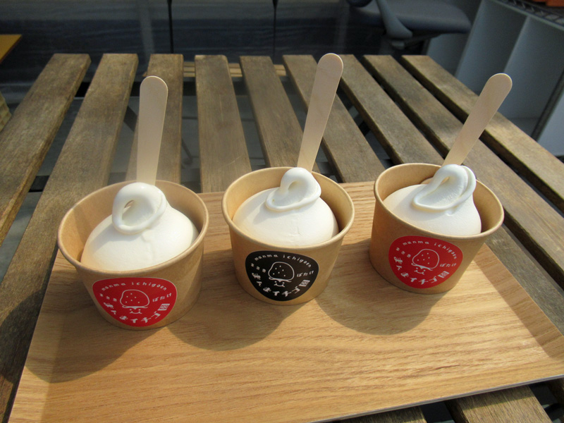 いちごハウス内では、ソフトクリーム(別料金)も食べることができます。大人気とのことで、ひと口食べると濃厚なクリームが口の中いっぱいに広がり納得! いちごにもよく合うとのことでクリームの上にイチゴをのっけて食べると、今度はイチゴの酸味が引き立つと同時にクリームの甘さがそれを覆って別次元へと私を連れてってくれました!