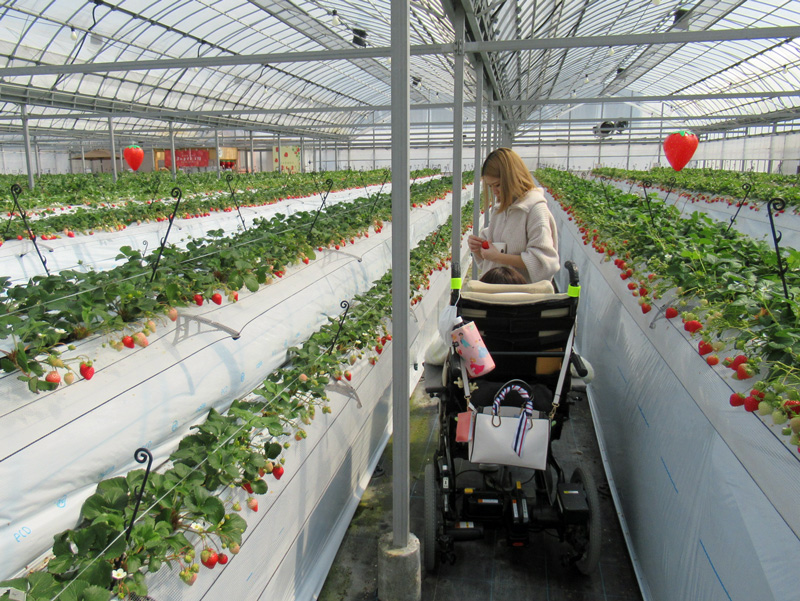車いすでも楽しめる「まんまイチゴ園」