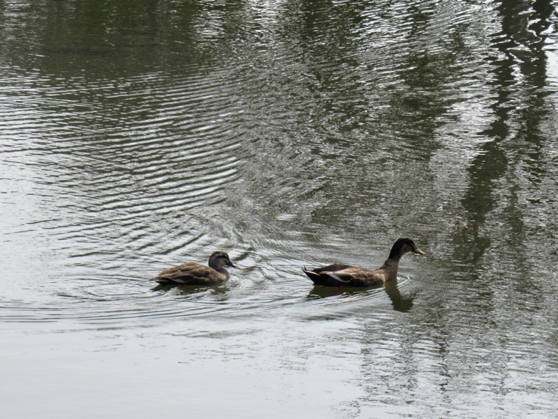 季節によってはカモの親子の姿も見られます。そしてもうひとつこの池には見れるものがあります。