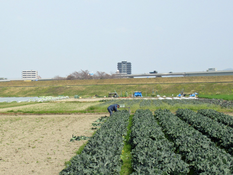 河川敷周辺は裸麦の他にもたくさんの野菜が育てられています。ブロッコリー畑にレタス畑など普段私たちが食べている野菜はこんなところから来ているのだ~と実感!