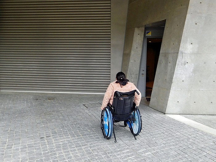 1-2. 駐車場からエレベーターを使って受付(2階)まで