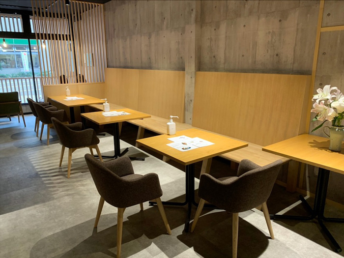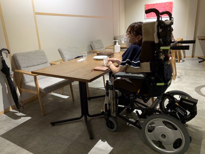 店内に数種類の座席(テーブルとイス)があります。車椅子の方もちょうどいいところを選ぶことができます。