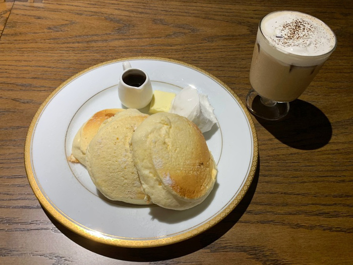 今回は、桜かふぇの人気定番メニューである「パンケーキ」を注文しました。こちらのメニューは、14 時以降 から注文可能なメニューであり、なくなり次第終了となっています。フォークで簡単に切れるくらいの柔らか さで、口の中に入れた瞬間に溶けてなくなるほどです。人気メニューという意味がわかりました。 ただ時間が経つと徐々に固くなるので早めにお召し上がり頂くことをオススメします。