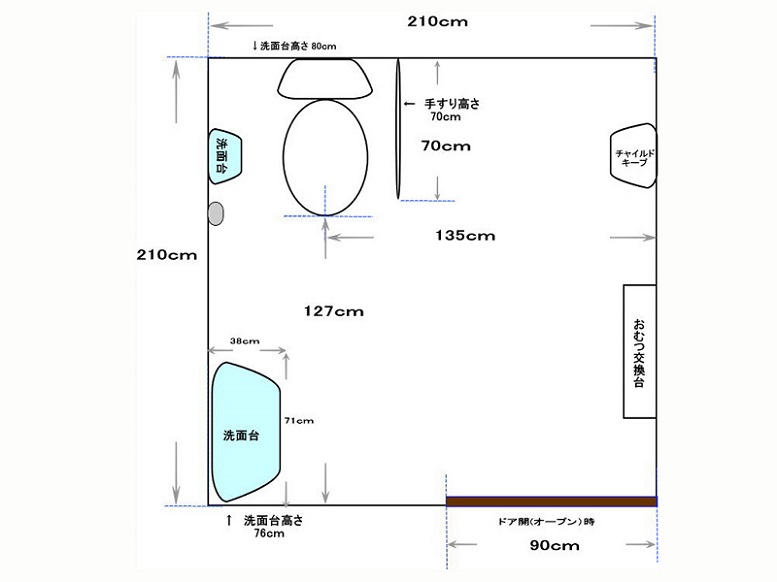 | 手すり | あり 壁側:L字型 逆側:U字型(上下可動) |