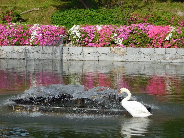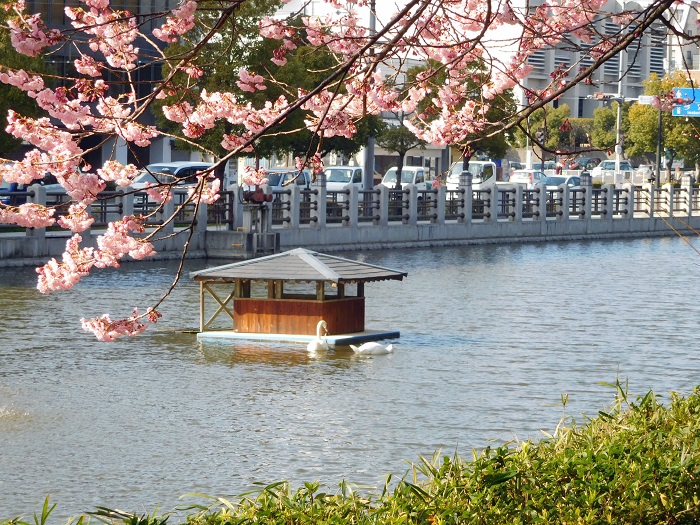 お堀周りも散歩すると楽しいです。白鳥に癒されてください。