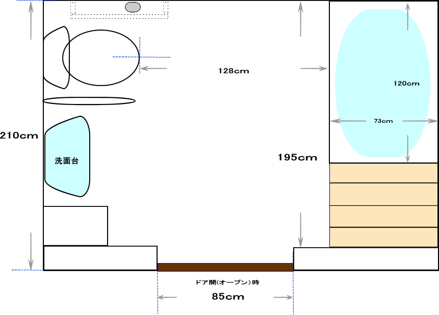 浴槽は設置されていません。階下の共同浴場を利用するようになります。