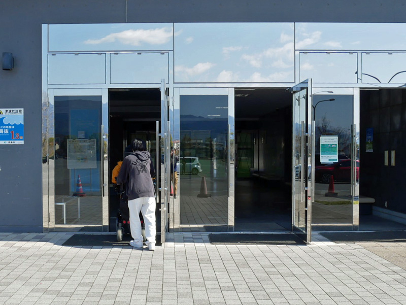 出入口フラットです。自動ドア、ドア(開き戸)どちらも入ることできます。(開き戸94㎝×2)