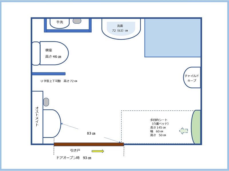 ※多目的シート(介護ベッド)は両方のバリアフリートイレに設置されています。