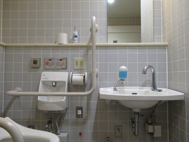 写真はオストメイトが設置されているバリアフリートイレ。もうひとつはオストメイトは設置されていません。
